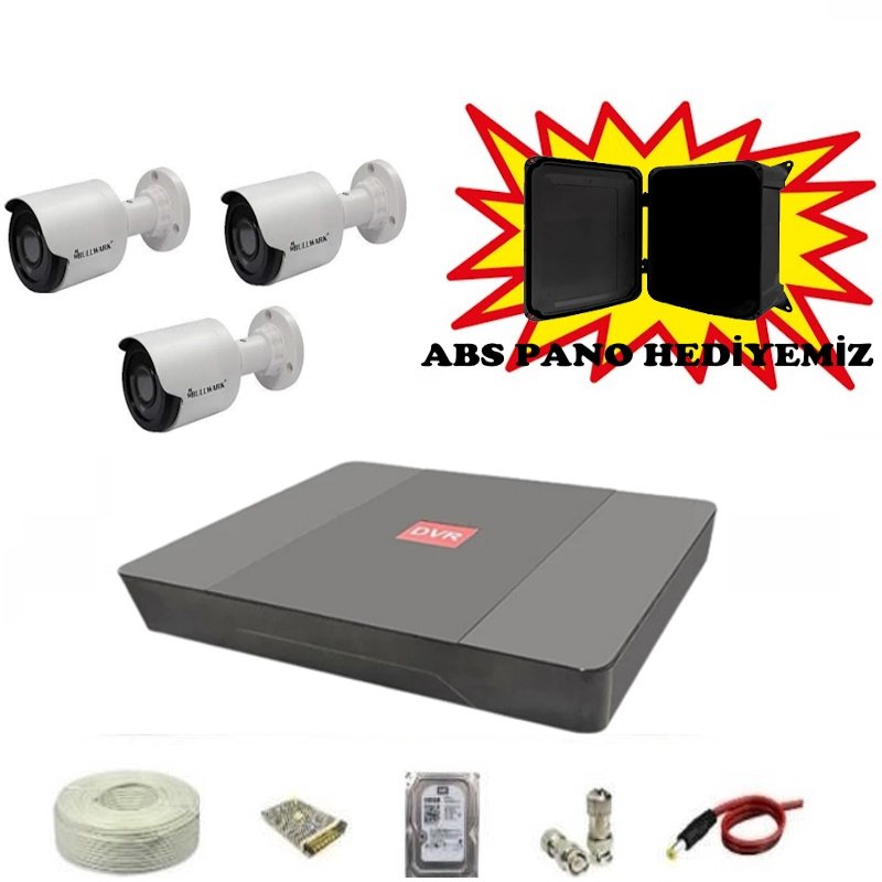 3 Kameralı Ev Ve İş Yeri Güvenlik Kamerası Sistemi ABS PANO HEDİYELİ