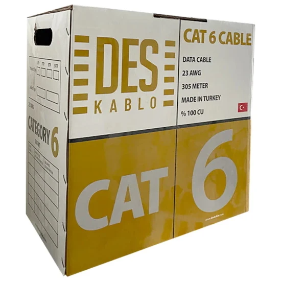 Des Kablo Cat 6 UTP 23 AWG Bakır 305M, yüksek hızlı ve güvenilir ağ bağlantısı için idealdir. Kaliteli bakır yapısı ve dayanıklı dış kaplamasıyla uzun süreli performans sağlar. Kolay kurulumu ve uzun mesafeli iletim yeteneğiyle iş veya ev ağlarınız için uygun bir seçimdir.